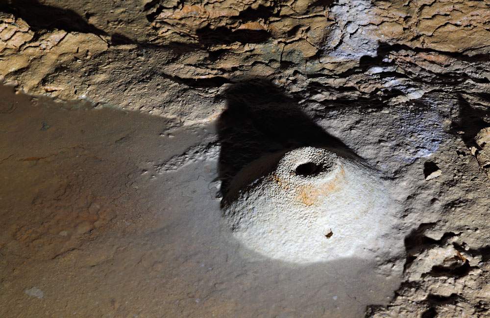 Au sol d'un quartier d'exploitation, la boue prend la forme de volcans miniatures