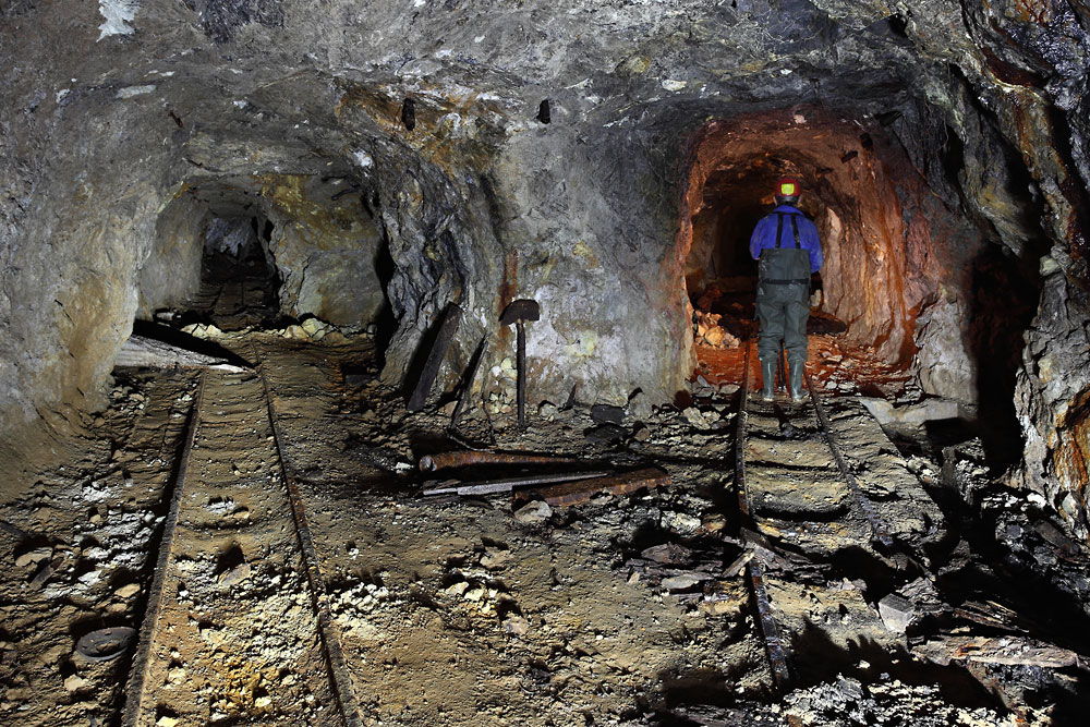 Bifurcation dans une galerie de roulage encore équipée de ses rails