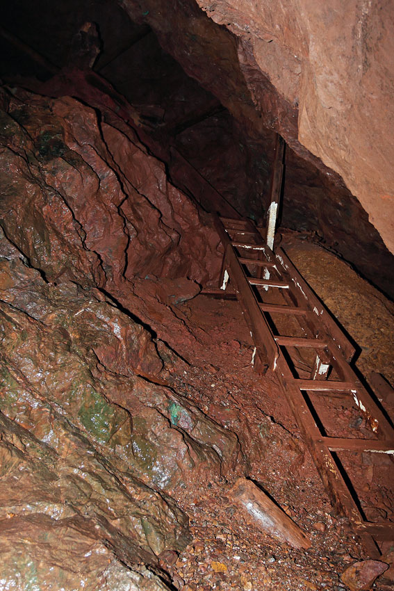 Dans le dépilage principal ; l'échelle est contemporaine - Mine de la Rouge-Montagne