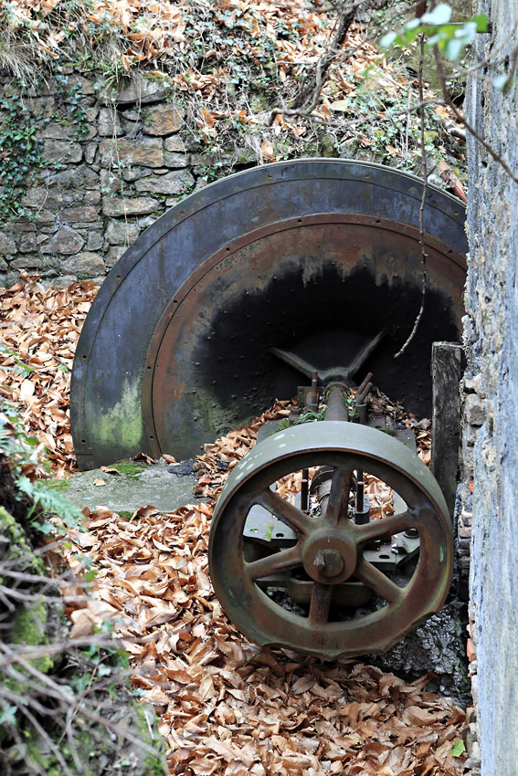 13/02/2011 | Vestige du ventilateur Mortier pour l'aérage de la mine Simon Supérieur, au 1er plan la poulie d'entraînement - Graissessac