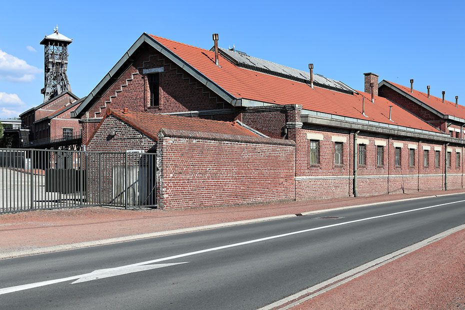 24/05/2010 | Vestiaires et bains-douches de la fosse Delloye, au fond le chevalement du puits n°1 - Lewarde