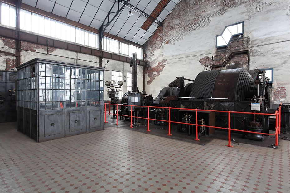 18/01/2013 | Salle de la machine d'extraction du puits n°9bis ; à gauche la cabine du machiniste - Fosse 9/9bis des Mines de Dourges à Oignies