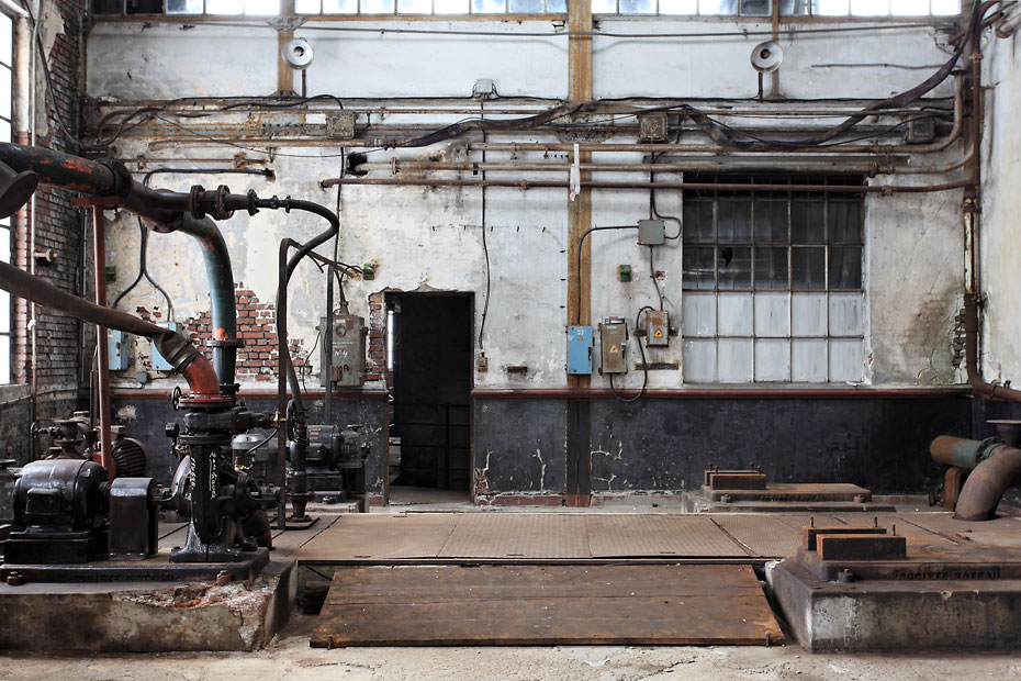 18/01/2013 | Dans la salle des ventilateurs ; à gauche les pompes d'un circuit de refroidissement - Fosse 9/9bis des Mines de Dourges à Oignies