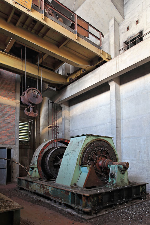 17/01/2013 | Groupe convertisseur et pont roulant dans un étage de la tour d'extraction du puits n°19 - Fosse Pierre Destombes à Loos-en-Gohelle