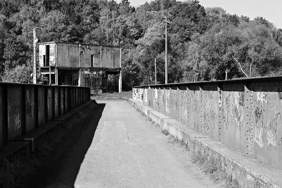 11/10/2010 | Pont sur l'Orne menant à la gare de chargement du minerai, au fond l'ancien poste d'aiguillage - Mine de May-sur-Orne à Bully
