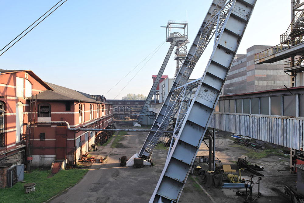 06/10/2014 | Vue sur le carreau au pied des chevalements (puits Józef au fond et Bolesław au premier plan)