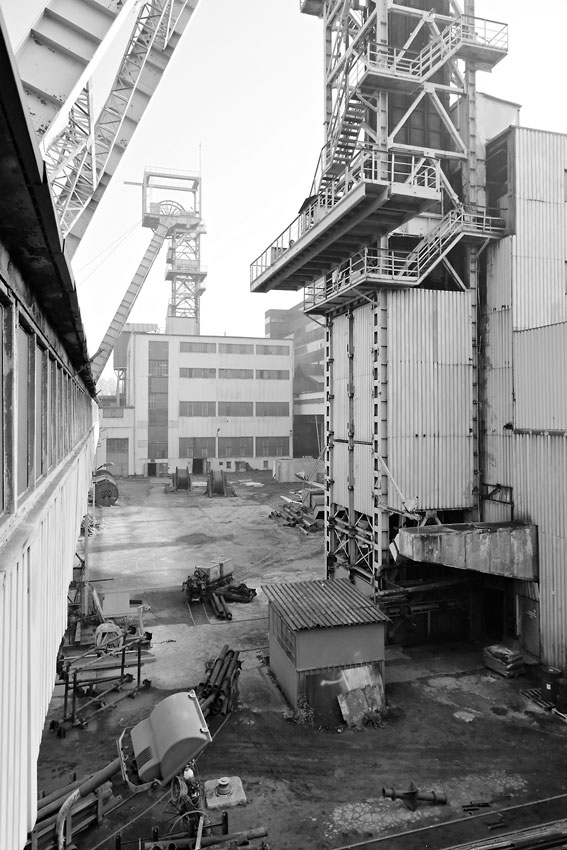 06/10/2014 | Au premier plan, recette à skips du puits Bolesław ; au fond chevalement et recette du puits Józef