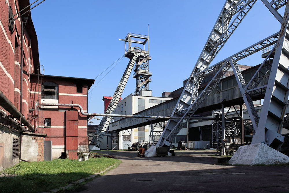06/10/2014 | Bâtiment de la machine d'extraction et chevalement du puits Bolesław ; au fond chevalement et recette du puits Józef