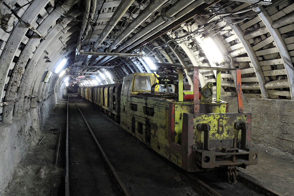 06/10/2014 | Train pour le personnel tiré par une loco électrique dans la 'gare' du puits Józef (étage -840 m)