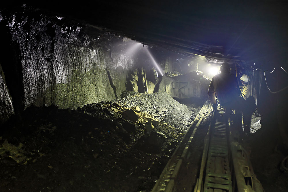 06/10/2014 | Au cœur de la taille, la haveuse et son tambour d'abattage garni de pics à l'arrêt