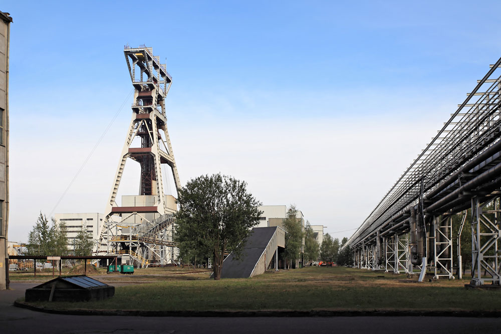 28/08/2013 | Chevalement portique du puits I ; on peut voir à droite que les diverses utilités sont regroupées sur des racks en hauteur