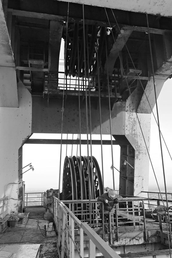 28/08/2013 | En haut du chevalement du puits I, l'étage inférieur des molettes