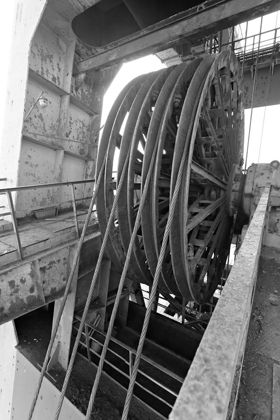 28/08/2013 | En haut du chevalement du puits I, groupe de 4 molettes inférieur