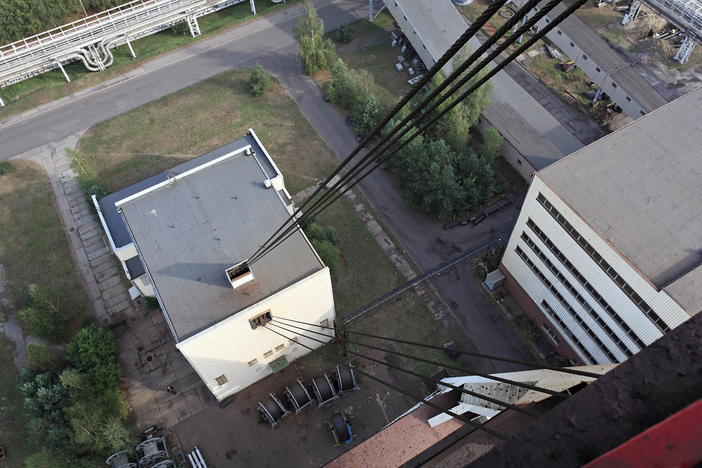 28/08/2013 | Bâtiment de la machine d'extraction (poulie Koepe quadricâble) du puits I vu depuis le chevalement