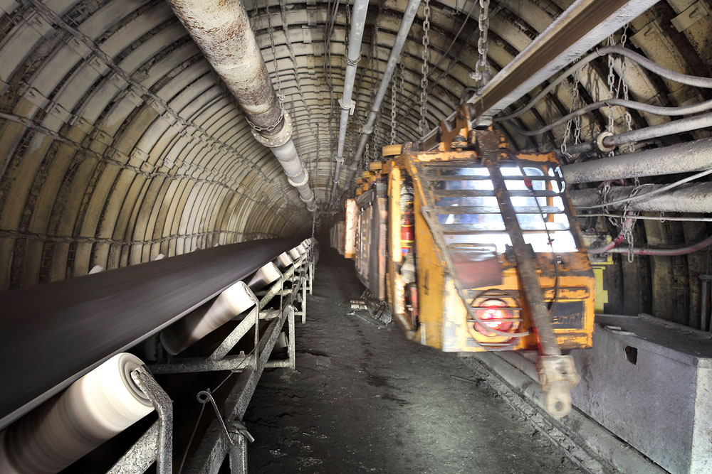 28/08/2013 | Dans ce travers-banc vers la taille, nous croisons un monorail tractant des caisses chargées de matériel