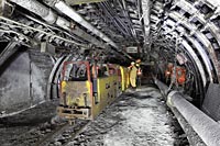 Le puits Skarga est équipé de 2 skips de 12 tonnes pour remonter le charbon extrait à l'étage 585m. On peut voir au niveau de la recette jour les trémies et convoyeurs pour récupérer le charbon provenant des skips.