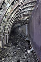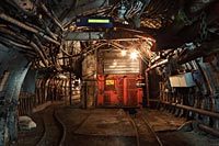 Peu de temps après l'arrêt de l'extraction du charbon, j'ai eu la possibilité de descendre rapidement à l'étage 585m. L'objectif de la visite était de voir le roulage à voie normale qui était utilisé pour le transport du charbon dans des berlines de type Granby, tirées par des locos électriques Konstal. Les berlines Granby sont vidées par basculement latéral de la caisse à l'aide d'un rail surélevé.