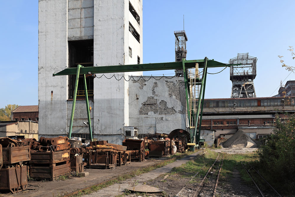 06/10/2014 | Stock de matériel au pied de la tour d'extraction du puit Budryk ; au fond les chevalements des puits Skarga et Rejtan