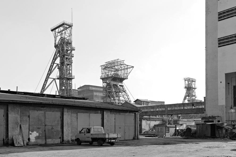 06/10/2014 | Chevalements des puits Skarga, Rejtan et Staszic, vus depuis le pied de la tour d'extraction du puits Budryk