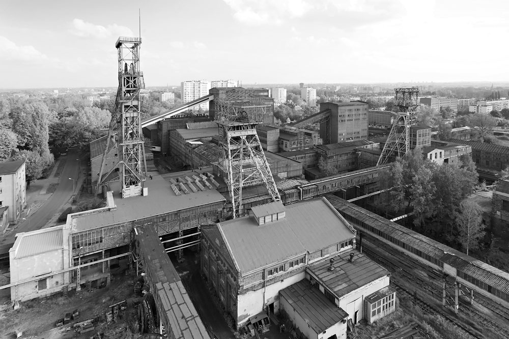06/10/2014 | Vue sur les puits Skarga, Rejtan et Staszic depuis la tour d'extraction du puits Budryk ; en arrière plan le lavoir