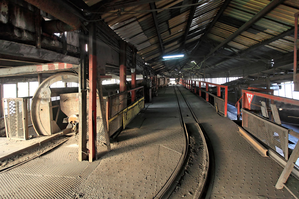 06/10/2014 | Recette jour du puits Staszic : circuit des berlines, vers la recette du puits Rejtan (au fond) ; à gauche un culbuteur