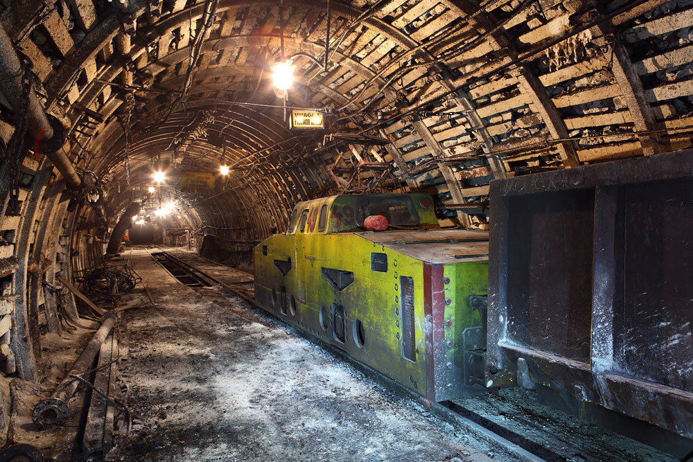 12/06/2015 | Roulage à voie métrique pour le transport du charbon à l'étage 585m : loco électrique Konstal en tête d'un train de berlines