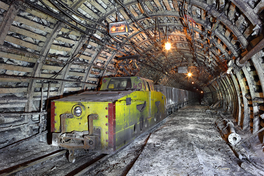 12/06/2015 | Train de berlines Granby tiré par une loco électrique Konstal sur un roulage à voie métrique de l'étage 585m