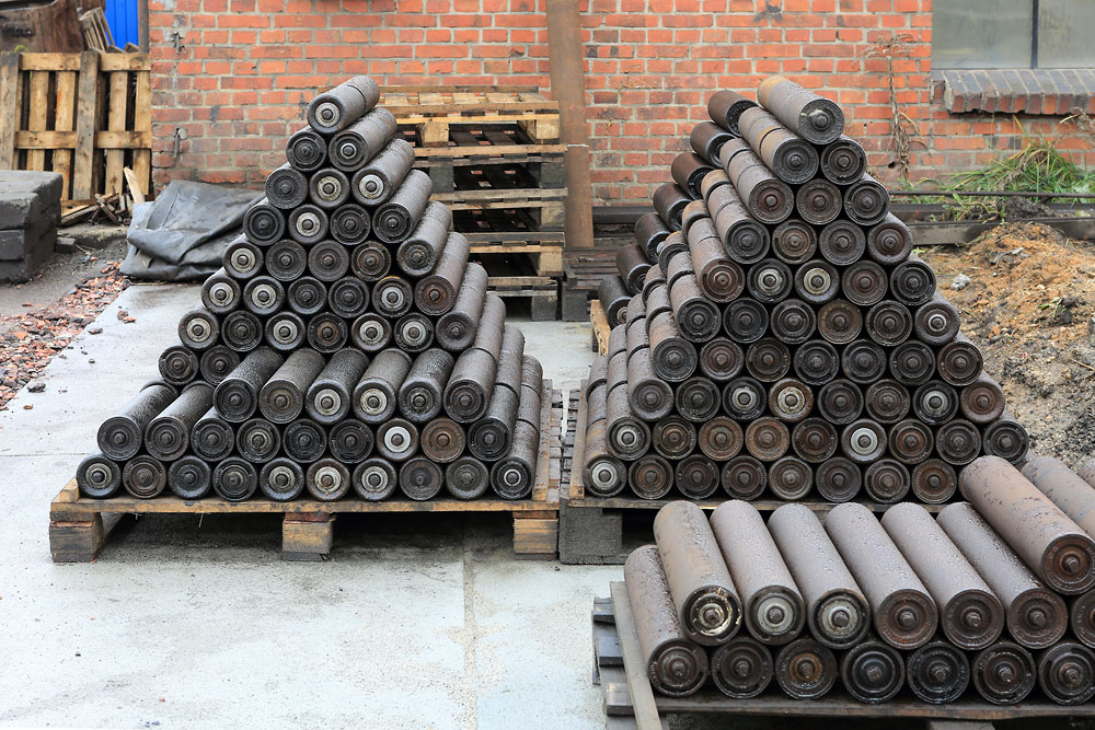 03/11/2017 | Stock de rouleaux de convoyeur à bande devant un atelier
