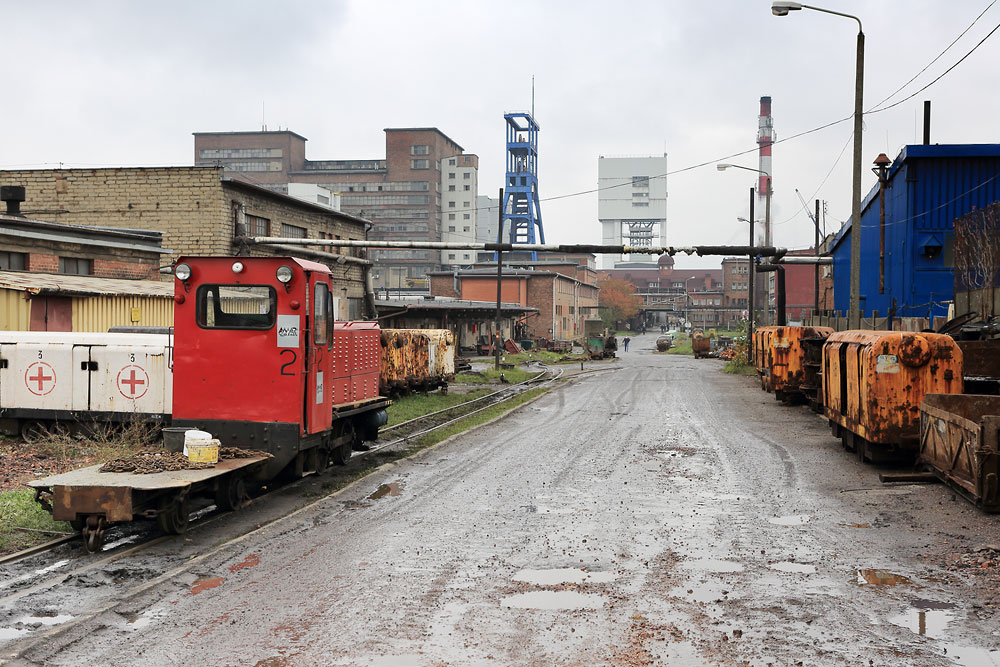 03/11/2017 | Locotracteur n°2, vu vers le parc à matériel ; au fond lavoir, puits II et puits VIII