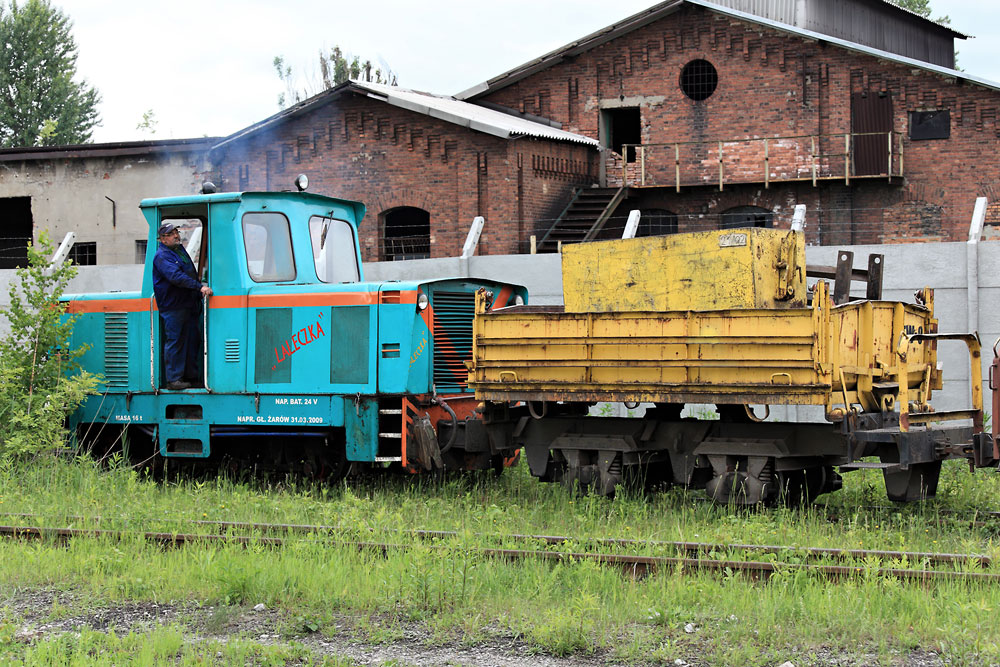 27/05/2013 | Chemin de fer à voie étroite de la mine : manœuvre d'un train de matériel tiré par une loco diesel Wls150 devant le puits Karol