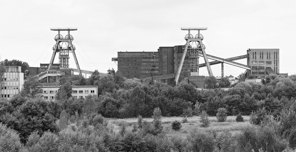 27/08/2013 | KWK Szczygłowice : chevalements portique des puits I et II ; au fond le lavoir