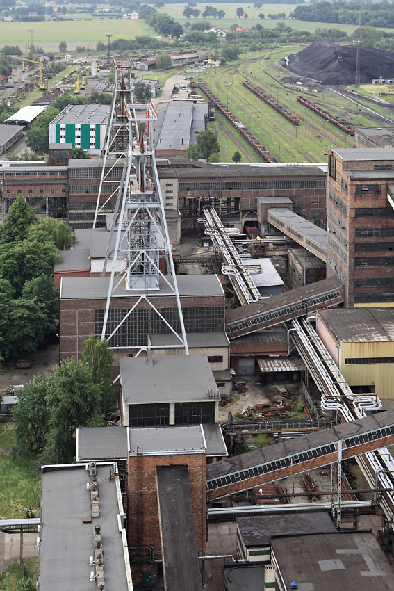 08/06/2015 | KWK Szczygłowice : vue sur la mine depuis le haut de la tour d'extraction du puits III - chevalements des puits I et II