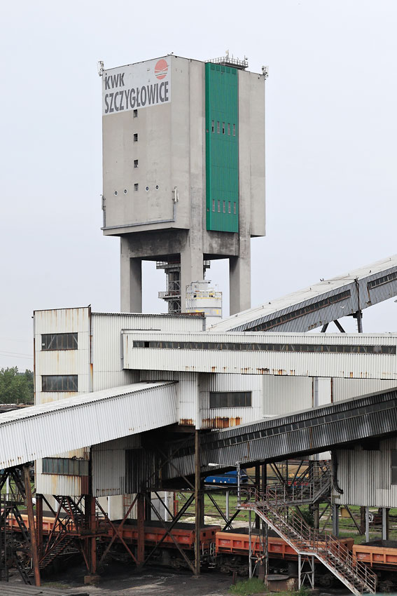 08/06/2015 | KWK Szczygłowice : enchevêtrement de convoyeurs à bande et tour d'extraction du puits III