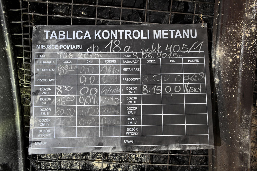 08/06/2015 | KWK Szczygłowice : chantier de traçage d'une galerie - tableau de contrôle du taux de grisou (méthane)
