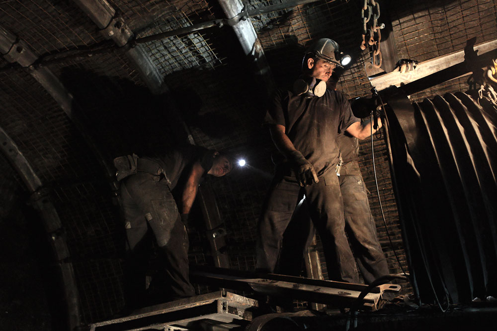 08/06/2015 | KWK Szczygłowice : chantier de traçage d'une galerie dans la couche de charbon - mise en place d'un tronçon de ventube