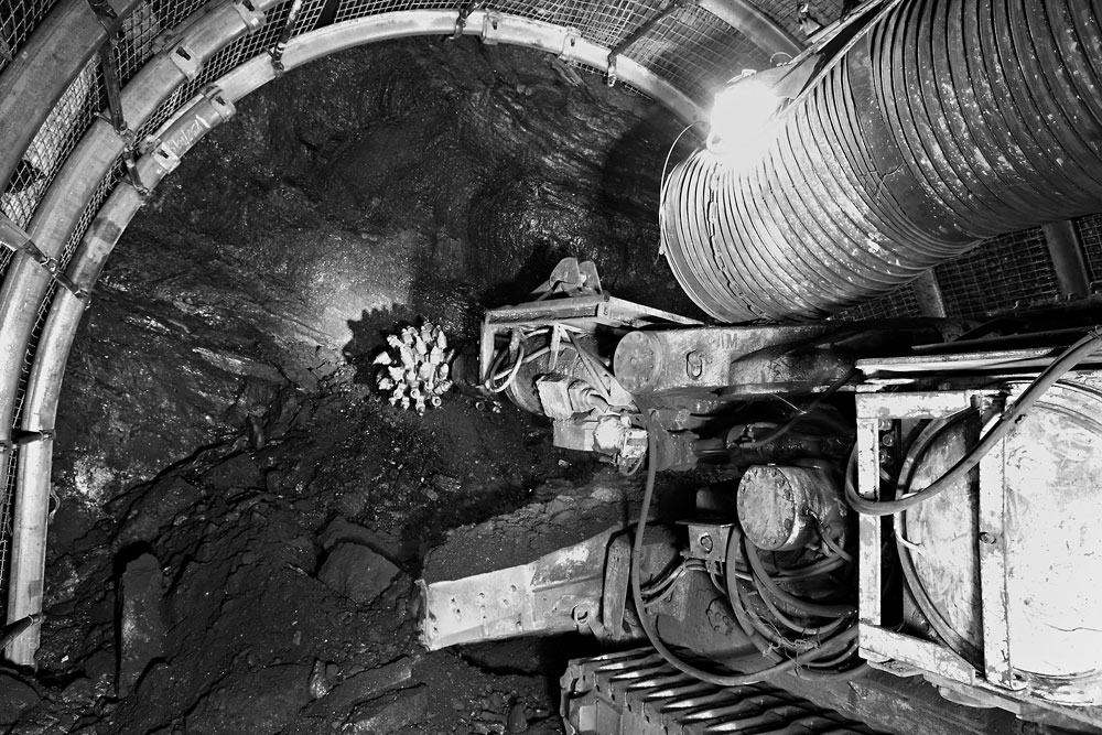 08/06/2015 | KWK Szczygłowice : chantier de traçage d'une galerie dans la couche de charbon - tête d'abattage du mineur continu