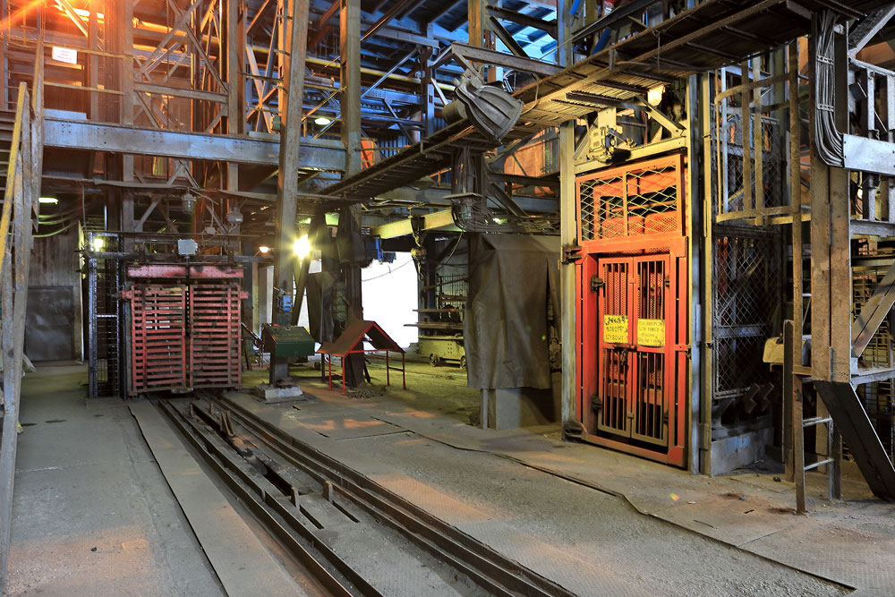 08/06/2016 | Siège Wschód : recette jour du puits Paweł - étage inférieur (matériel) ; à gauche un monte-charge à berlines