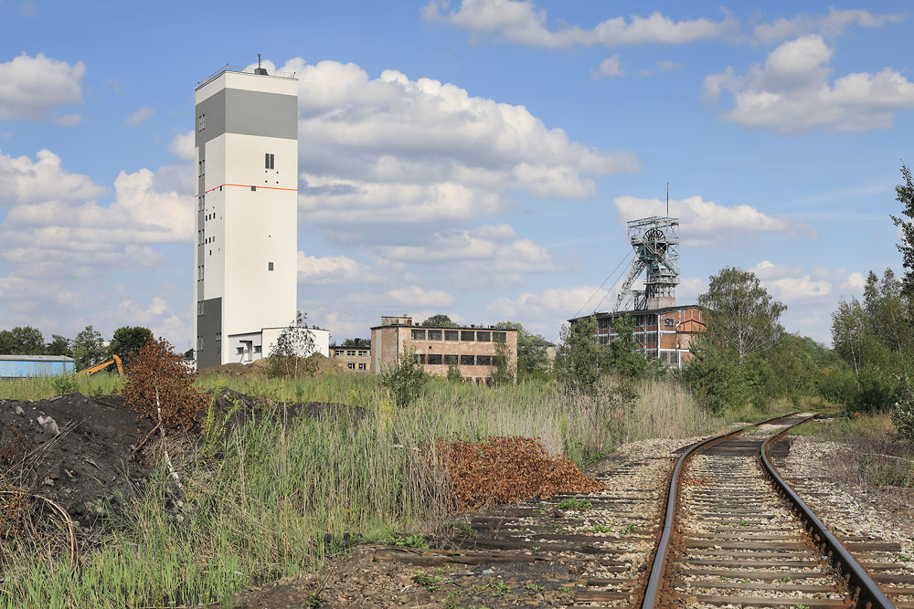 07/08/2019 | Siège Zachód : tour d'extraction du puits Foch II (après réfection), chevalement et recette du puits Foch I