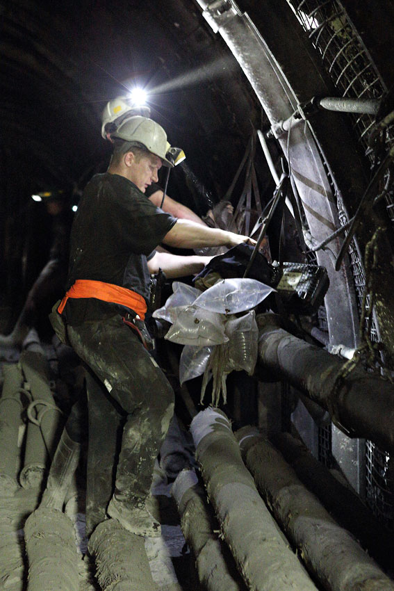 08/06/2016 | Ce mineur transporte des prélèvements d'air réalisés dans les chantiers ; ils seront analysés au jour