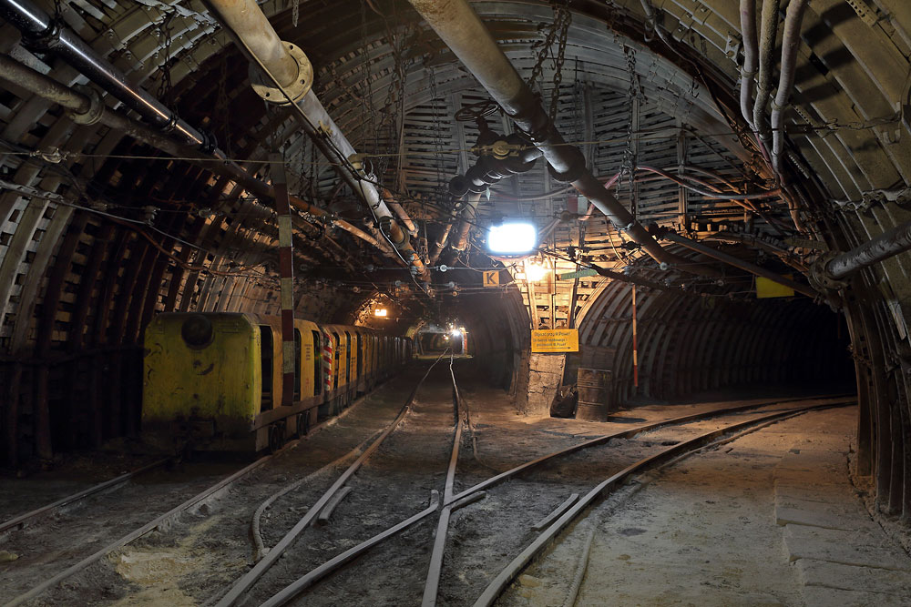 08/06/2016 | Wagons pour le personnel dans les galeries en sortie de la gare du puits Paweł - Etage 850