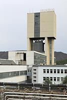 Les installations de la mine sont modernes et rationnelles. Les trois puits sont alignés et équipés d'un grand chevalement portique en béton (puits I), d'une tour d'extraction surmontant un grand bâtiment de recette (puits II) et d'un chevalement métallique avec une recette sassée (puits III). Le site comportait également un grand lavoir (dont la démolition était déjà bien avancée lors de mon passage en août 2019) et un parc à matériel (vide). Au nord du site, de l'autre côté des voies ferrées, un grand terril domine les installations.