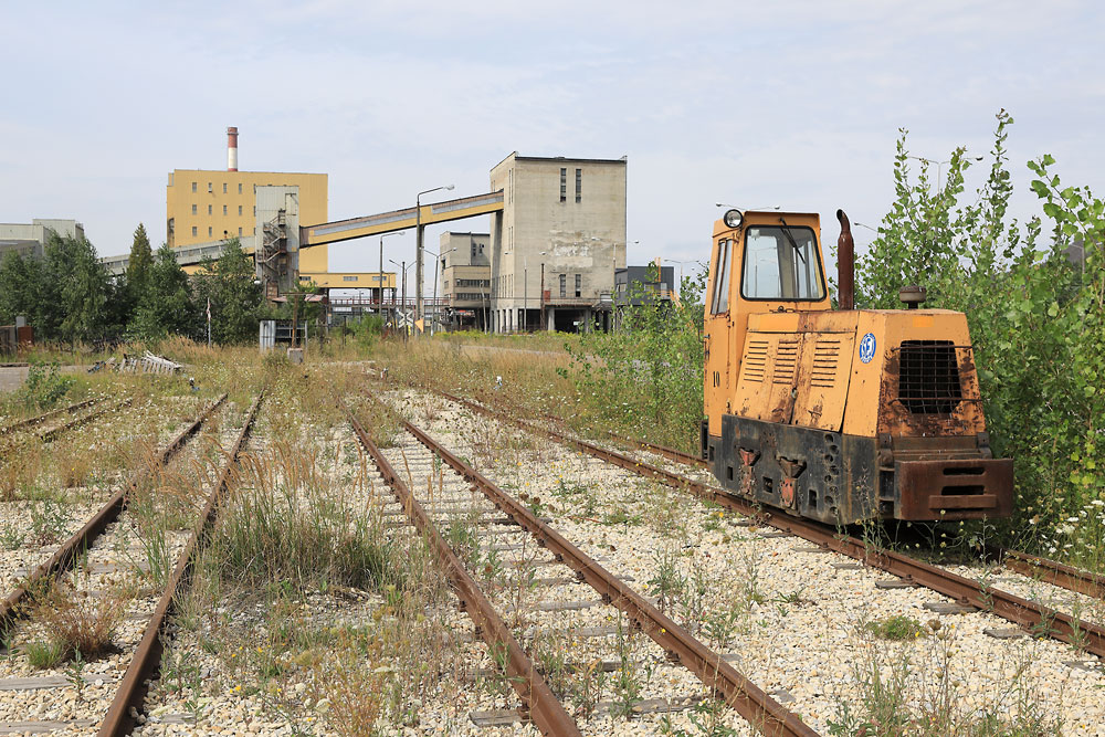 07/08/2019 | Locotracteur diesel utilisé pour le transport du matériel sur le carreau ; au fond lavoir et trémies de chargement des trains