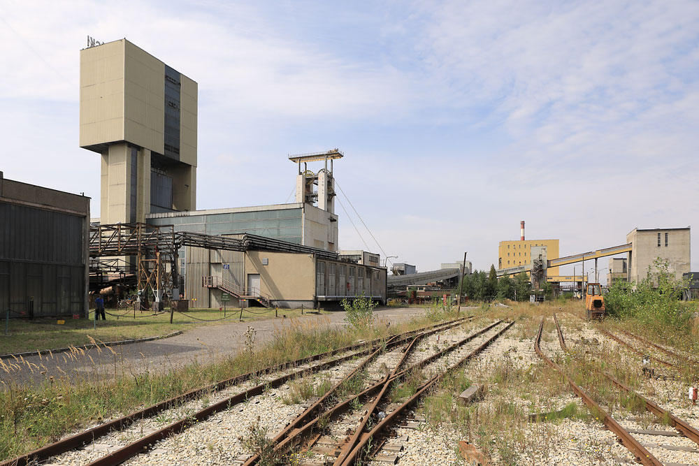07/08/2019 | Tour d'extraction du puits II et chevalement du puits I vus depuis le réseau ferré à voie étroite pour le transport du matériel