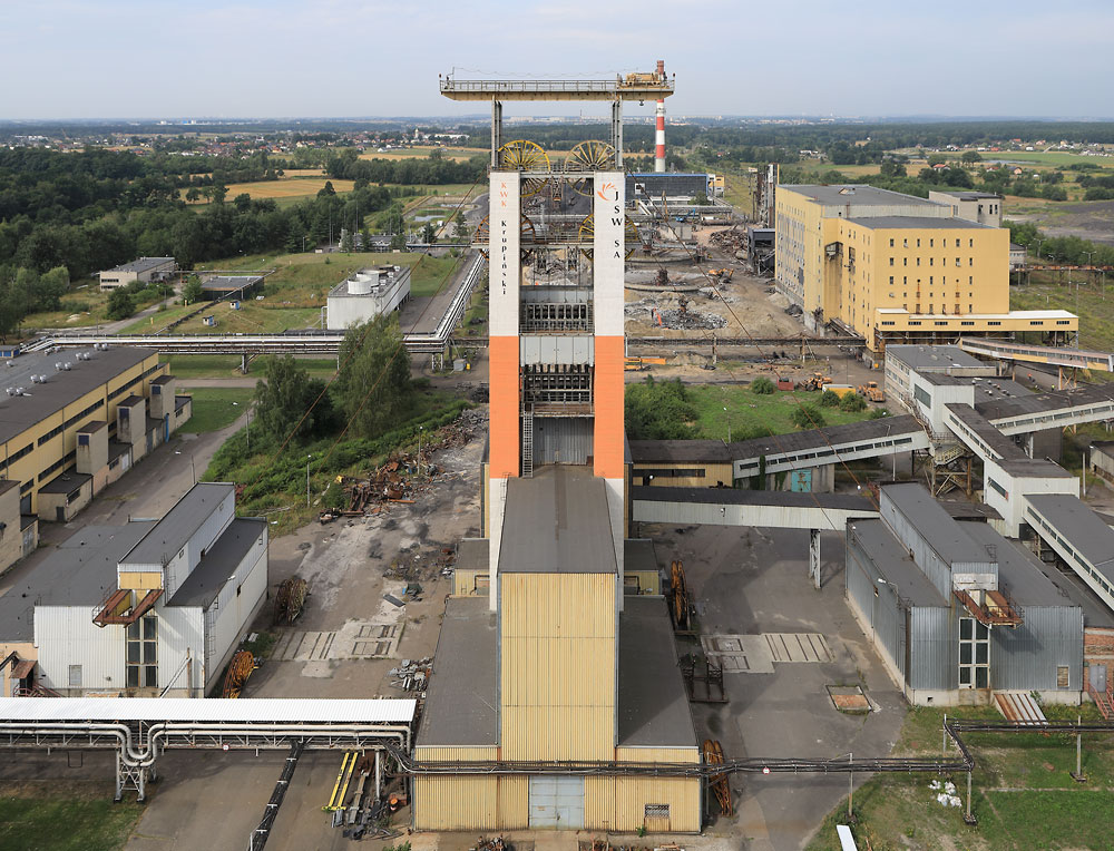 07/08/2019 | Chevalement portique en béton et bâtiment des machines d'extraction du puits I vus depuis la tour d'extraction du puits II
