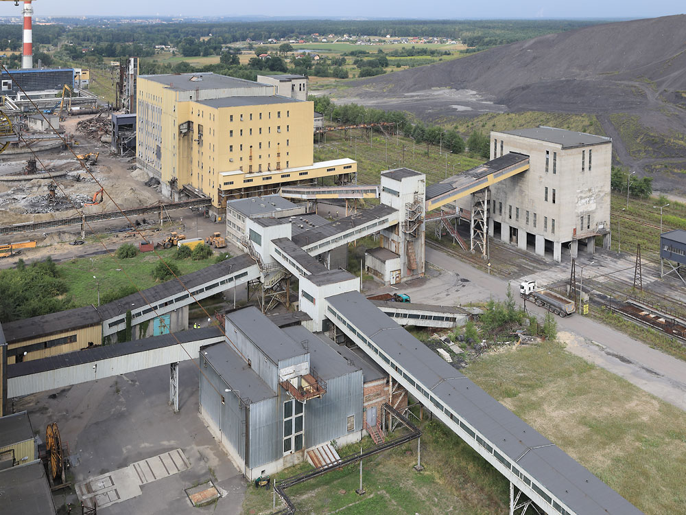 07/08/2019 | Le lavoir en cours de démolition vu depuis la tour du puits II ; au 1er plan bâtiment de la machine d'extraction 'nord' du puits I