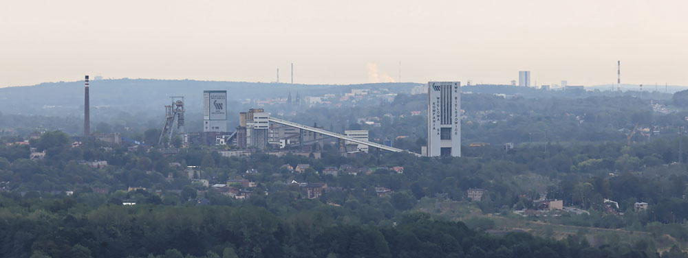 23/09/2015 | La mine Bielszowice vue depuis la tour d'extraction du puits IV ; on aperçoit dans le fond la mine Śląsk