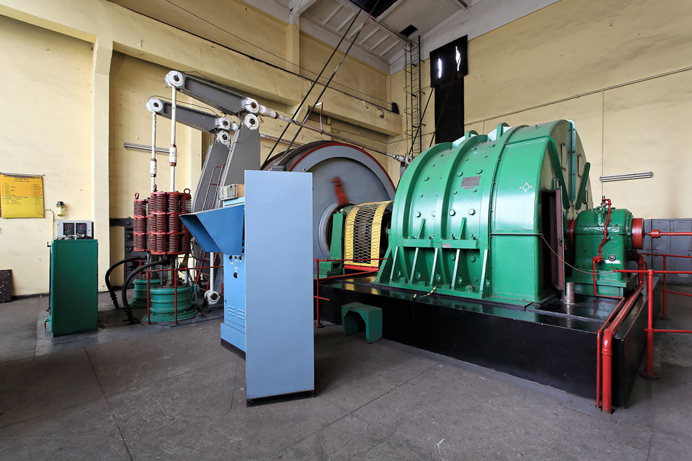 23/09/2015 | Machine d'extraction 'ouest' du puits III : poulie Koepe bicâble entraînée par un moteur électrique