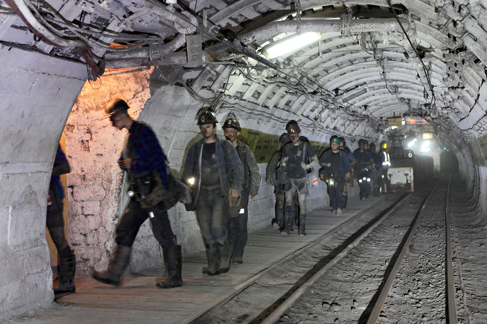 24/09/2015 | Un groupe de mineurs en fin de poste quitte un train dans la gare du personnel du puits I (étage 660)