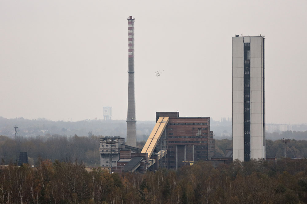 01/11/2017 | La mine Makoszowy vue depuis le terril : lavoir et tour d'extraction du puits IV ; au fond tour du puits Wanda (mine Pokój)