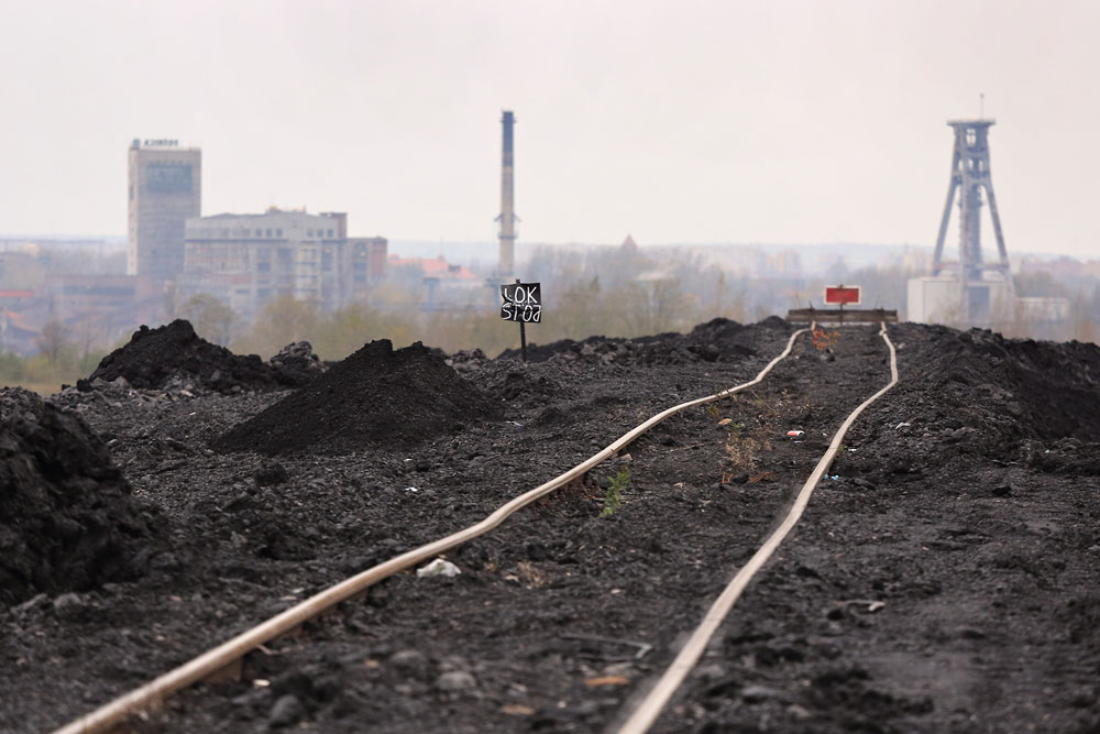 01/11/2017 | Voie de chemin de fer pour la mise à terril ; au fond mine Sośnica (tour d'extrac. du puits IV, lavoir, chevalement du puits VII)